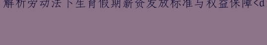 解析劳动法下生育假期薪资发放标准与权益保障